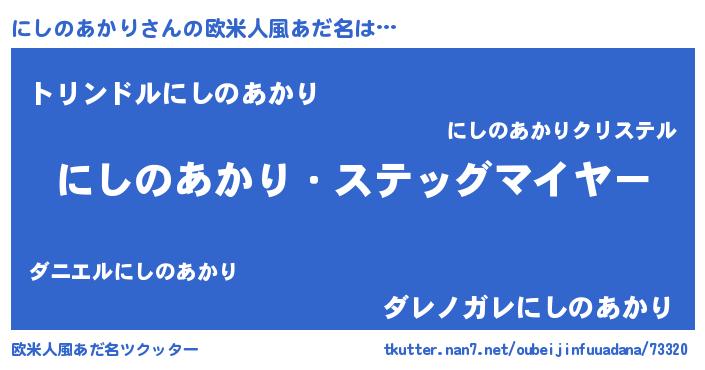 | 男性向けラノベタイトル風あだ名 | 『うちのにしのあかりが世界を掌握している!』 |