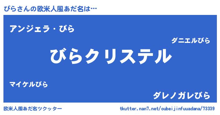 | 意味不明あだ名 | 『びらフォーエバー』『ペロリンびら』 |