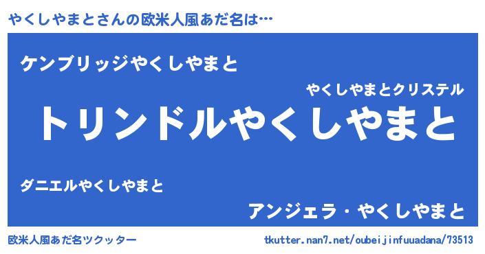 | 男性向けラノベタイトル風あだ名 | 『ヤクシヤマトスレイヤー』 |