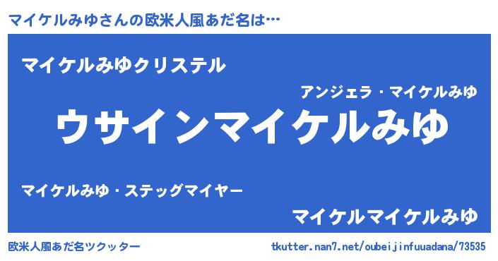 | 男性向けラノベタイトル風あだ名 | 『マイケルみゆの嫁は女の子じゃないと思った?』 |