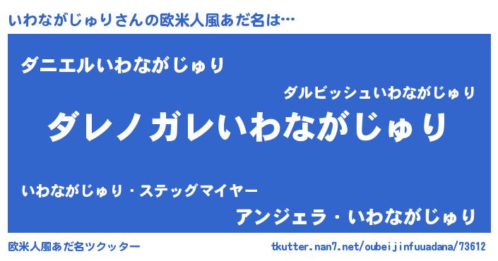 | 男性向けラノベタイトル風あだ名 | 『魔弾の王といわながじゅり』 |