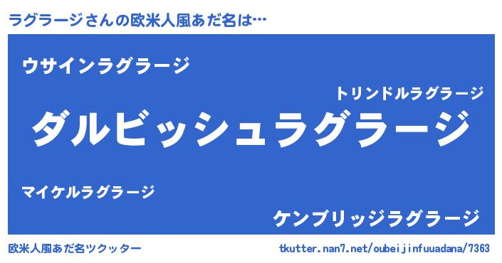 | 男性向けラノベタイトル風あだ名 | 『ラグラージという概念が存在しない退屈な世界 』 |