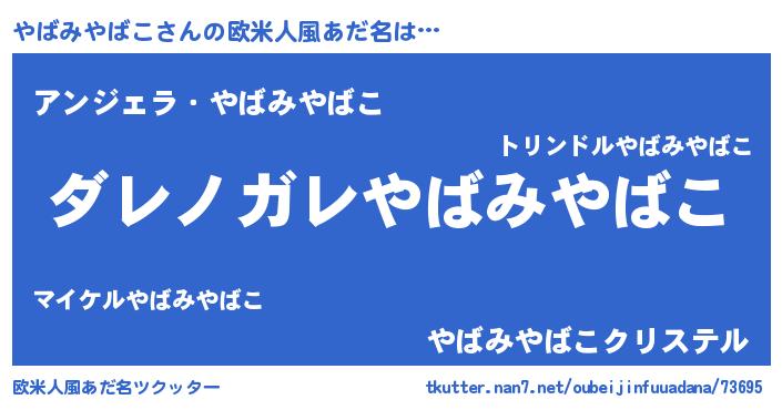 | 男性向けラノベタイトル風あだ名 | 『この素晴らしい世界にやばみやばこを!』 |