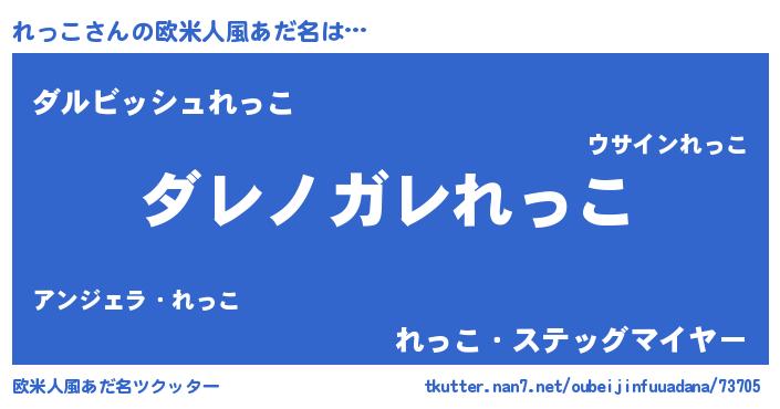 | 男性向けラノベタイトル風あだ名 | 『この素晴らしい世界にれっこを!』 |