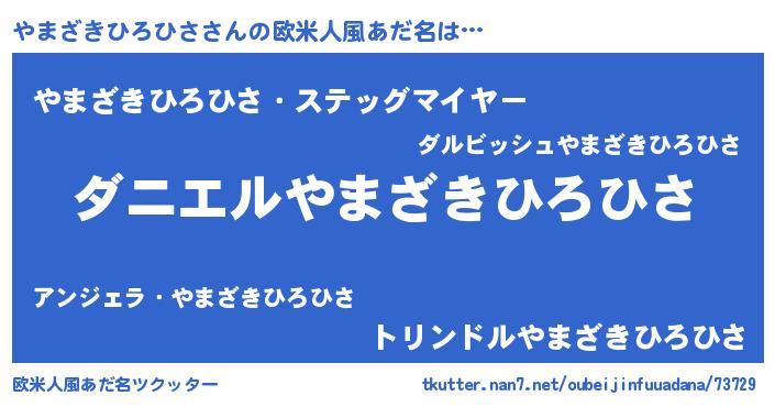 | 男性向けラノベタイトル風あだ名 | 『おまえをオタクにしてやるから、俺をやまざきひろひさにしてくれ! 』 |