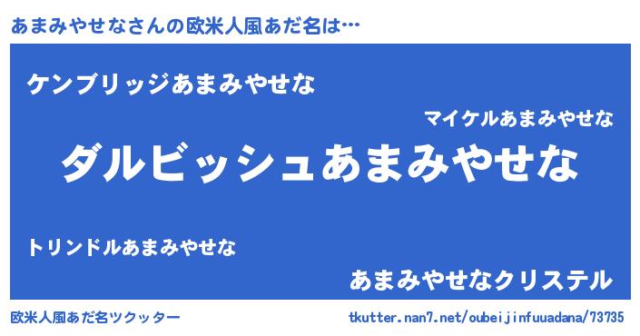 | 胡散臭い通販商品みたいなあだ名 | 『来世でも幸せになれる健康食品…その名も「あまみやせな」』 |