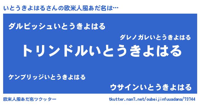 | 男性向けラノベタイトル風あだ名 | 『いとうきよはる~年齢イコール彼女いない歴の魔法使い~』 |