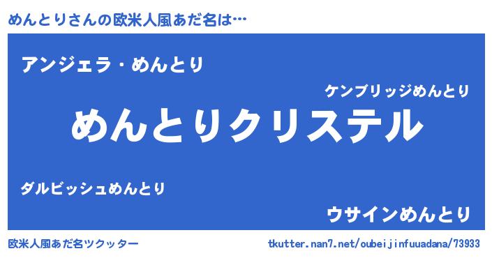 | 意味不明あだ名 | 『めんとりフォーエバー』『自称めんとり』 |