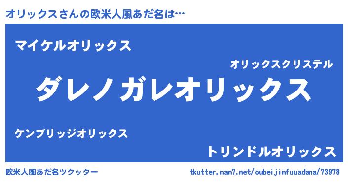 | ヒーロー風カッコイイあだ名 | 『仮面オリダー』『スーパーオリックス』 |