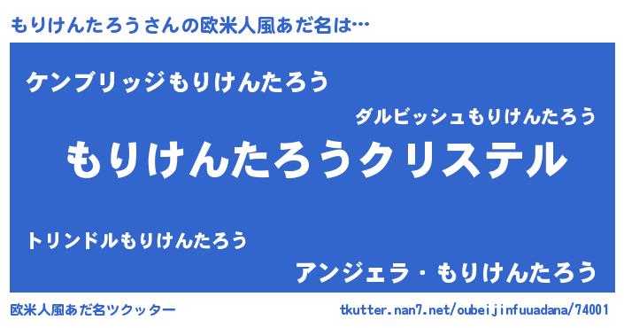 | 女子向けラノベタイトル風あだ名 | 『もりけんたろう伯爵の花嫁』 |