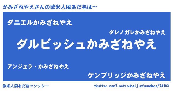 | 胡散臭い通販商品みたいなあだ名 | 『来世でも幸せになれる健康食品…その名も「かみざねやえ」』 |