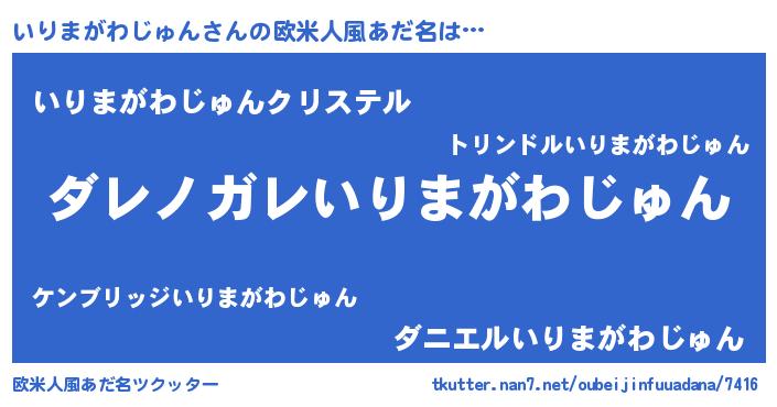 | 女子向けラノベタイトル風あだ名 | 『いりまがわじゅんが死なない童話 林檎のいりまがわじゅんの診療簿』 |