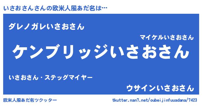 | 男性向けラノベタイトル風あだ名 | 『Re:いさおさんから始める異世界生活』 |