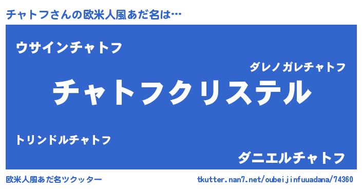 | 女子向けラノベタイトル風あだ名 | 『チャトフ伯爵の花嫁』『チャトフ恋絵巻』 |