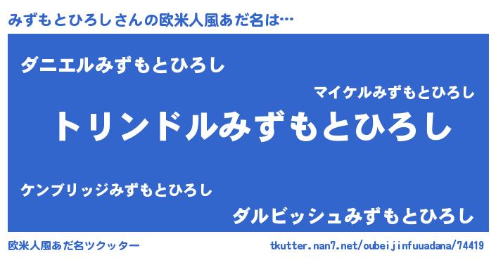 | 男性向けラノベタイトル風あだ名 | 『みずもとひろし~年齢イコール彼女いない歴の魔法使い~』 |