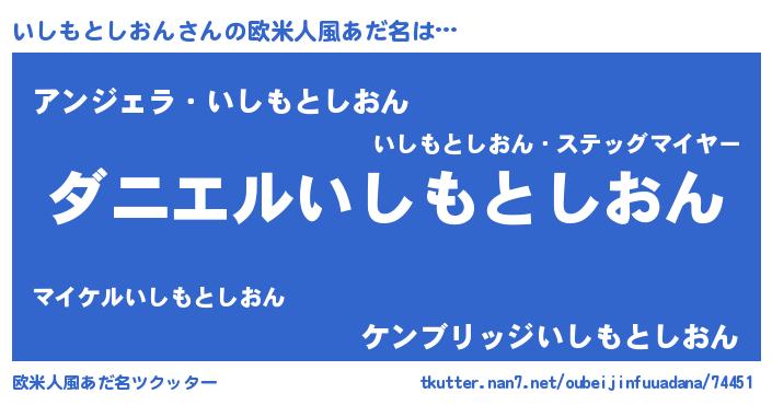 | 男性向けラノベタイトル風あだ名 | 『おまえをオタクにしてやるから、俺をいしもとしおんにしてくれ! 』 |
