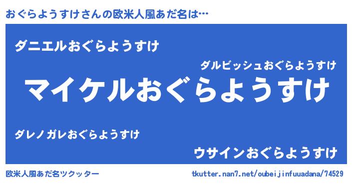 | 男性向けラノベタイトル風あだ名 | 『オグラヨウスケアートオンライン』 |