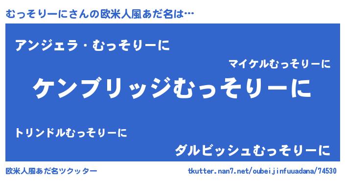 | 男性向けラノベタイトル風あだ名 | 『Re:むっそりーにから始める異世界生活』 |