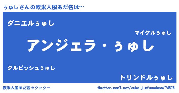 | 自動車の名前っぽいあだ名 | 『ランゥュギーニ』『ゥンR』『デミゥ』 |