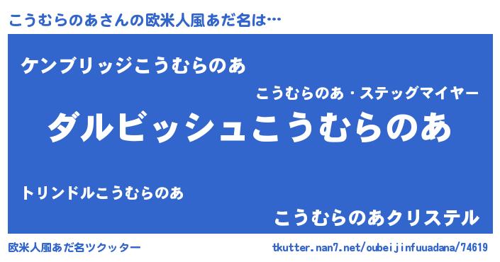 | 男性向けラノベタイトル風あだ名 | 『こうむらのあという概念が存在しない退屈な世界 』 |