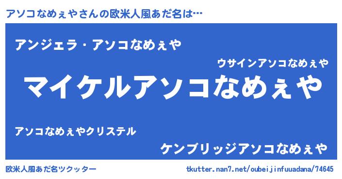 | 男性向けラノベタイトル風あだ名 | 『アソコなめぇやの憂鬱』 |