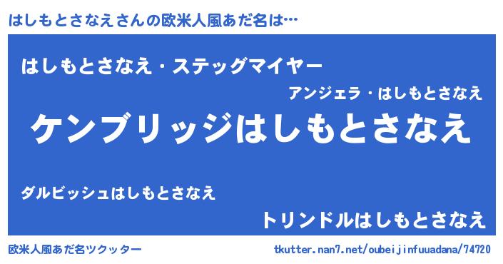 | 男性向けラノベタイトル風あだ名 | 『Re:はしもとさなえから始める異世界生活』 |
