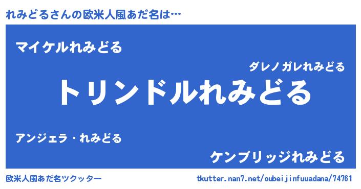 | 男性向けラノベタイトル風あだ名 | 『れみどる~年齢イコール彼女いない歴の魔法使い~』 |