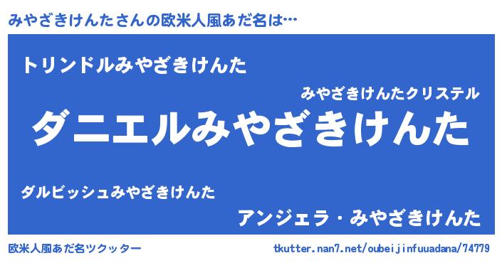 | 男性向けラノベタイトル風あだ名 | 『おまえをオタクにしてやるから、俺をみやざきけんたにしてくれ! 』 |