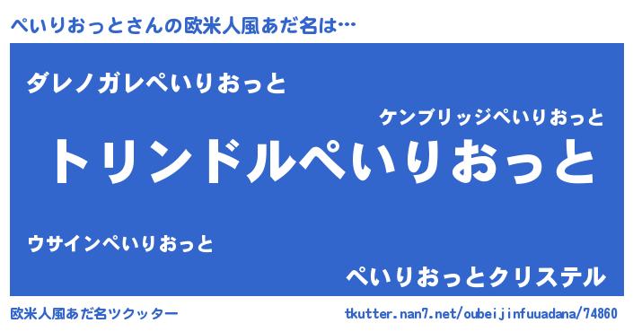 | 女子向けラノベタイトル風あだ名 | 『ぺいりおっとの玉の輿計画!』 |