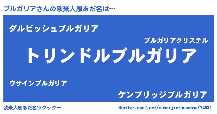 | 男性向けラノベタイトル風あだ名 | 『ブルガリアスレイヤー』 |