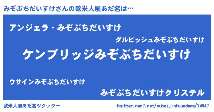 | 男性向けラノベタイトル風あだ名 | 『Re:みぞぶちだいすけから始める異世界生活』 |