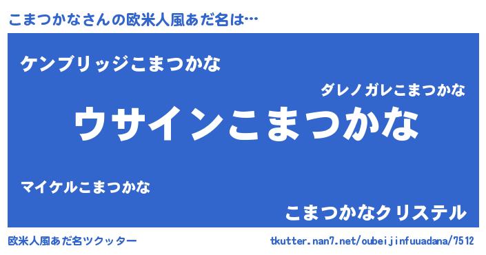 | 男性向けラノベタイトル風あだ名 | 『こまつかなの嫁は女の子じゃないと思った?』 |