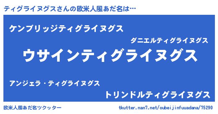| 女子向けラノベタイトル風あだ名 | 『ティグライヌグス様がみてる』 |