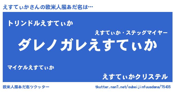 | 男性向けラノベタイトル風あだ名 | 『魔弾の王とえすてぃか』 |