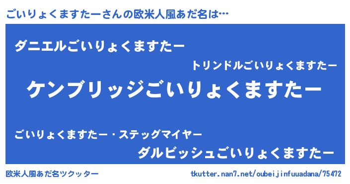 | 意味不明あだ名 | 『自称ごいりょくますたー』 |