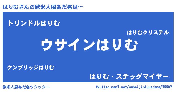 | 男性向けラノベタイトル風あだ名 | 『はりむの嫁は女の子じゃないと思った?』 |