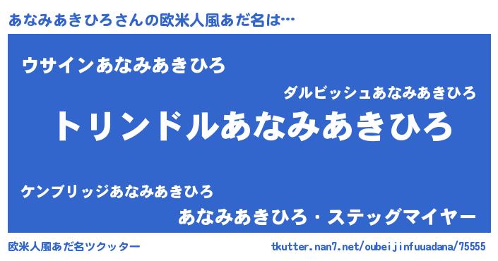 | 男性向けラノベタイトル風あだ名 | 『転生したらあなみあきひろだった件』 |