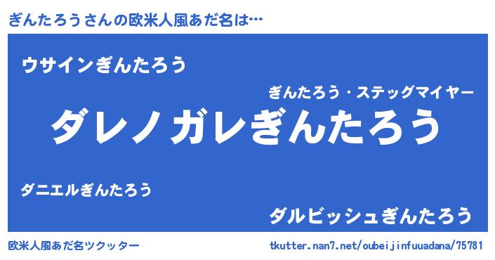 | 女子向けラノベタイトル風あだ名 | 『乙女ゲームの破滅フラグしかない悪役ぎんたろうに転生してしまった…』 |