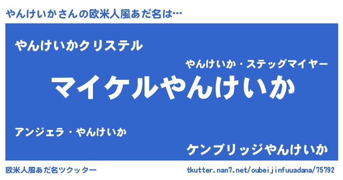 | 男性向けラノベタイトル風あだ名 | 『やんけいかの憂鬱』『緋弾のヤンケイカ』 |