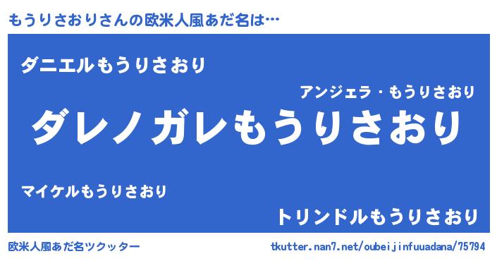 | 女子向けラノベタイトル風あだ名 | 『もうりさおりが死なない童話 林檎のもうりさおりの診療簿』 |