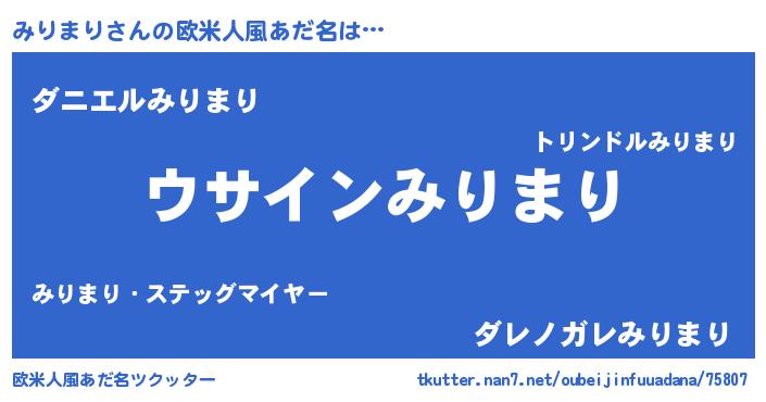| 男性向けラノベタイトル風あだ名 | 『みりまりの嫁は女の子じゃないと思った?』 |
