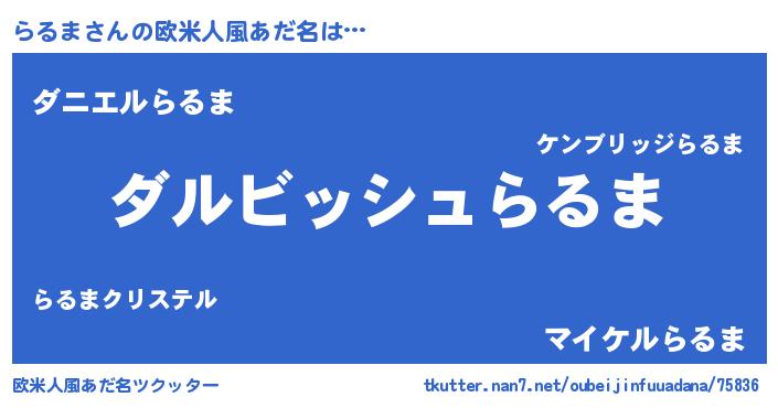| ヘコむあだ名 | 『らるま(遠い目)』『らるっふぃ~』 |