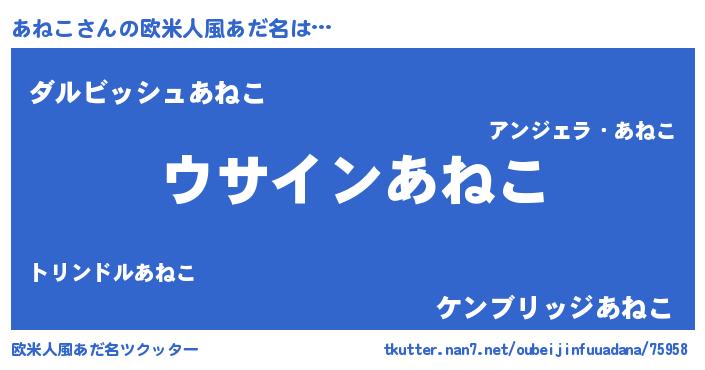 | 男性向けラノベタイトル風あだ名 | 『あねこの嫁は女の子じゃないと思った?』 |