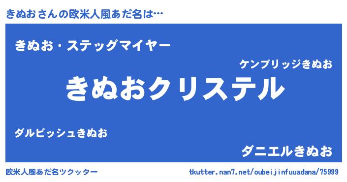 | 女子向けラノベタイトル風あだ名 | 『きぬおの婚約者』『きぬお恋絵巻』 |