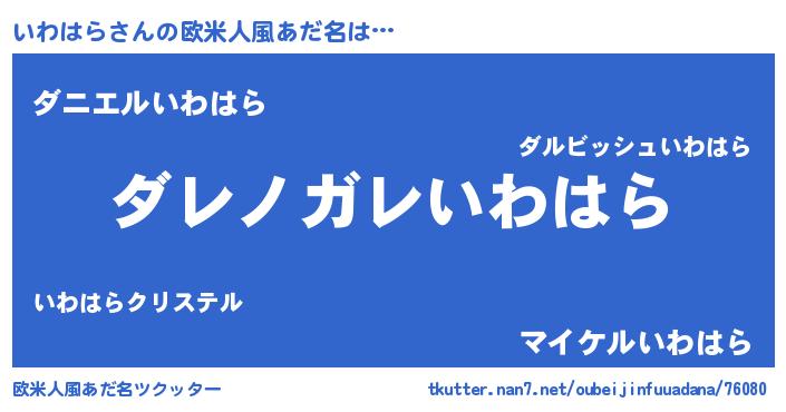 | 男性向けラノベタイトル風あだ名 | 『この素晴らしい世界にいわはらを!』 |