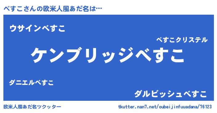 | 男性向けラノベタイトル風あだ名 | 『Re:べすこから始める異世界生活』 |