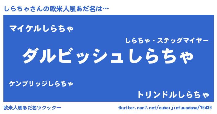 | 男性向けラノベタイトル風あだ名 | 『しらちゃという概念が存在しない退屈な世界 』 |
