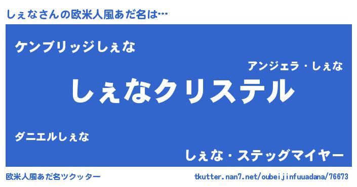 | 男性向けラノベタイトル風あだ名 | 『やはりしぇなの青春ラブコメはまちがっている 』 |