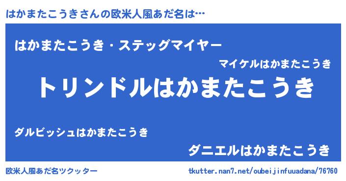 | 男性向けラノベタイトル風あだ名 | 『はかまたこうき~年齢イコール彼女いない歴の魔法使い~』 |