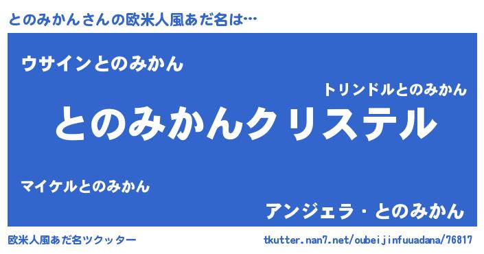 | 肩書あだ名 | 『とのみかん国家主席』『とのみかん少将』 |